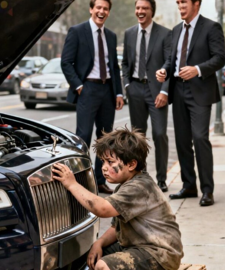 Alors qu’ils se dirigeaient vers la soirée la plus scintillante de la ville à bord de leurs voitures de luxe, trois hommes d’affaires furent soudainement stoppés, déconcertés. Habitués à résoudre chaque problème par l’argent, ils ouvrirent le capot et se regardèrent, impuissants, en essayant de masquer leur gêne par des rires nerveux. Le chef du groupe, un milliardaire, saisit son téléphone pour appeler le mécanicien le plus coûteux, lorsque surgit de l’ombre de la rue un petit garçon couvert de poussière et de saleté.