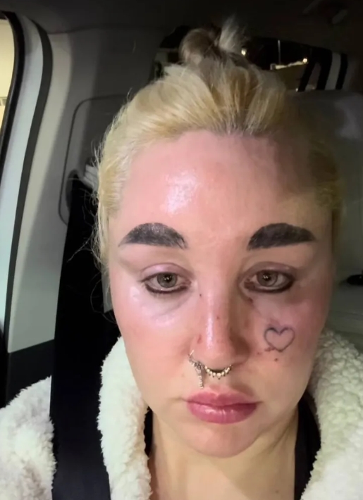 Aujourd’hui, l’apparence réelle d’Amanda Bynes — caractérisée par des tatouages faciaux visibles, un visage plus rond, des lèvres redessinées et des sourcils prononcés — tranche nettement avec l’image lumineuse et juvénile de ses débuts, témoignant d’années de transformations personnelles et de choix esthétiques. Ce contraste a suscité une curiosité particulière : l’utilisation de rendus générés par intelligence artificielle pour imaginer une version alternative de son évolution.