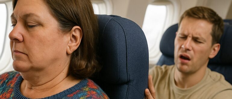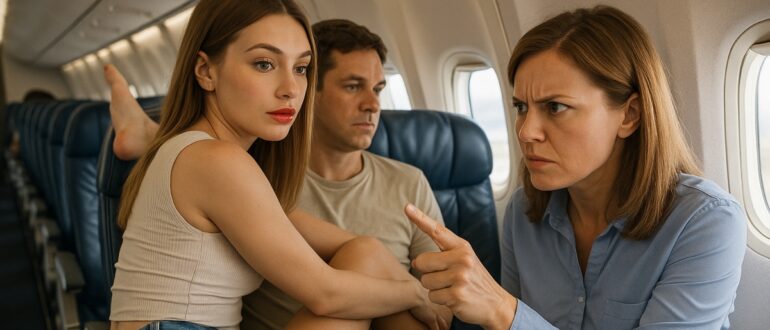 Dans l’avion, une femme a incliné son siège et m’a écrasé les jambes — alors je lui ai donné une petite leçon de savoir-vivre. J’étais assis tranquillement côté