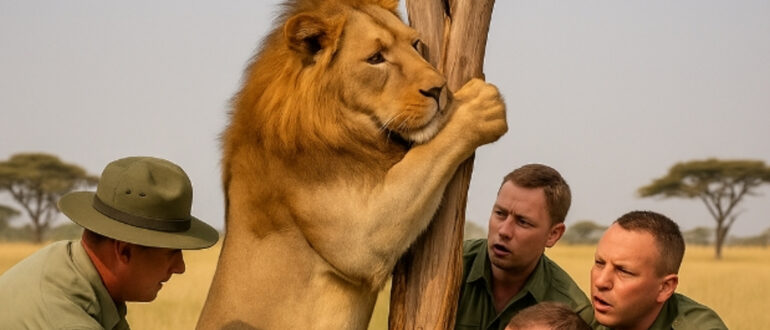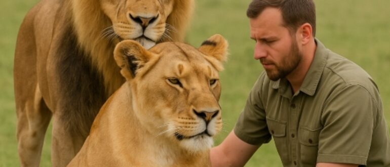 Le soleil brûlant frappait sans pitié la savane africaine. Le sable brûlait les pattes, l’air tremblait de chaleur. Deux lions — un mâle et une femelle — avançaient