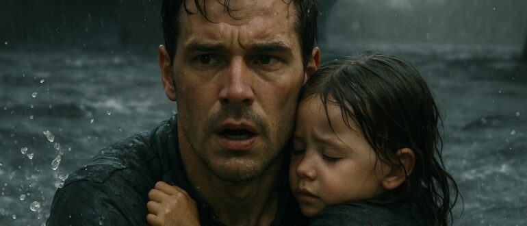La rivière était déchaînée après la pluie. La foule sur le pont criait ; quelqu’un appelait les services d’urgence, tandis que d’autres restaient paralysés, ne sachant que faire.