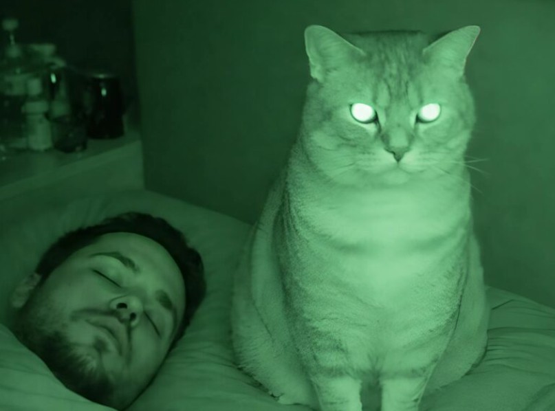 En regardant les enregistrements, je n’ai pas pu m’empêcher de rire. En réalité, notre pauvre chat n’était pas inquiétant… il était simplement excédé par les ronflements bruyants de mon mari. Ces regards fixes et inquiétants n’étaient pas le signe d’une menace, mais d’une mission de maintien du silence.