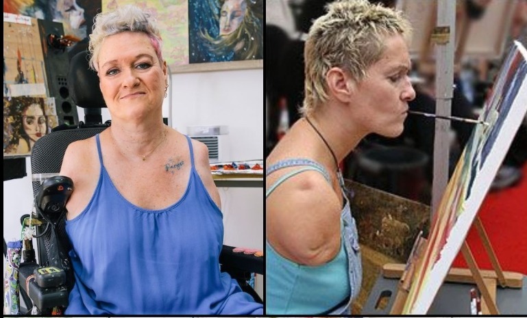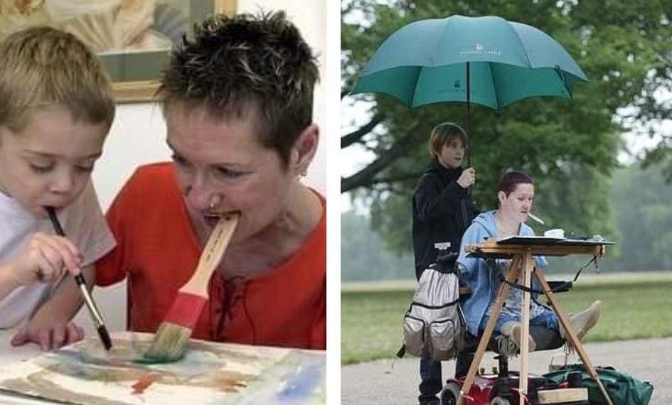 Née avec une phocomélie, une malformation qui l’a privée de bras et lui a laissé des jambes incomplètement développées, Alison Lapper fut très tôt qualifiée de « cas complexe » par les médecins, de source de honte par sa famille, et de corps à « corriger » par les institutions. Dès l’enfance, on lui répétait qu’elle ne pourrait jamais vivre de manière autonome, travailler, aimer, et surtout devenir mère. Mais au lieu de se plier à ces limites, Alison choisit de les considérer comme autant de défis à dépasser. Elle décida de vivre non pour prouver quelque chose, mais en utilisant sa bouche pour peindre, écrire et créer, transformant peu à peu l’art en un moyen d’émancipation et d’évasion du monde institutionnel.