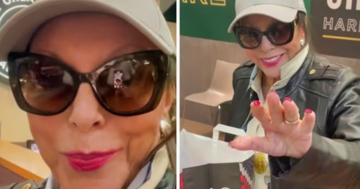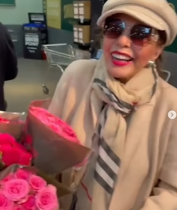 Dame Joan Collins, l’icône britannique de 90 ans, a récemment offert à ses admirateurs un aperçu charmant de sa vie quotidienne en partageant sur Instagram des images de sa sortie shopping du samedi chez Marks & Spencer. Toujours symbole d’élégance, elle a été photographiée vêtue d’une casquette plate crème assortie à un manteau de la même teinte et d’une écharpe Burberry emblématique. À l’intérieur du supermarché, Joan portait de grandes lunettes de soleil marron et un rouge à lèvres rouge éclatant, choisissant avec soin du poulet, de la salade et un joli bouquet de roses, tout en échangeant un sourire complice avec la caissière.