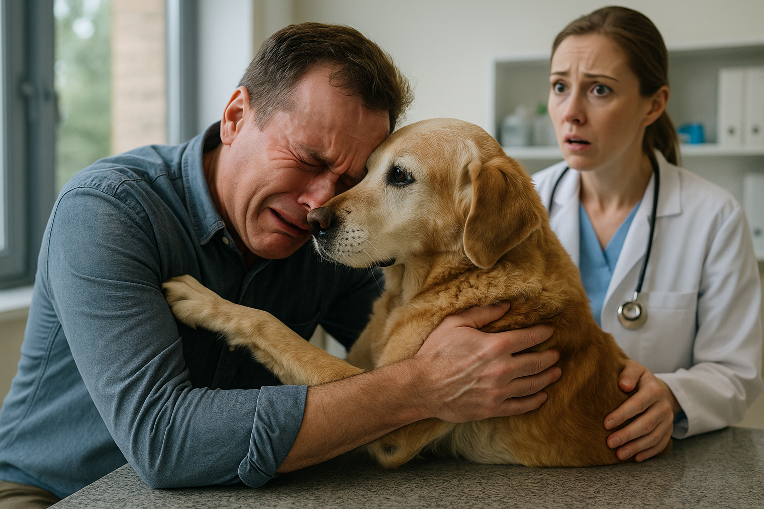 L’homme était assis en silence dans le cabinet vétérinaire, incapable d’accepter ce qui se passait. Sur la table devant lui reposait son fidèle compagnon — le chien qui avait partagé chaque joie, chaque peine, chaque nuit de solitude. L’animal semblait toujours le comprendre sans mots, reflétant ses émotions comme un miroir de l’âme.