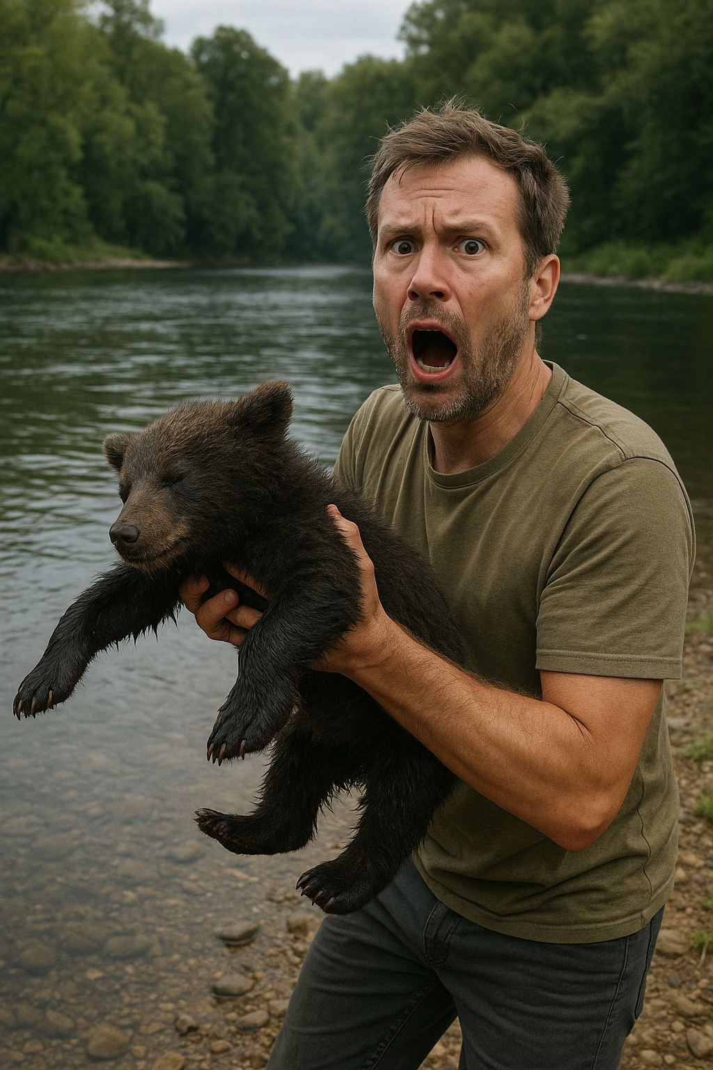 J’ai retiré de la rivière le petit corps sans vie d’un ourson — mais ce qui m’est arrivé ensuite s’est transformé en une épreuve inoubliable.