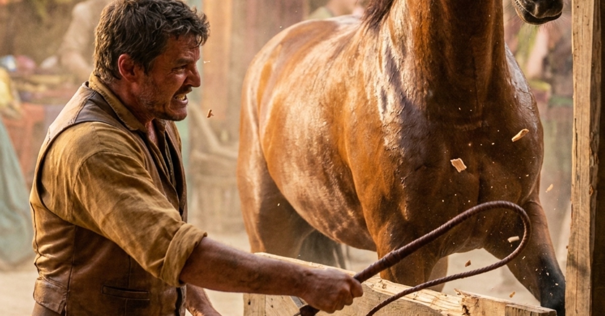 Le cheval ne recula pas ; il explosa. Les sabots tonnèrent sur les planches alors que l’étalon se cabrait, les naseaux dilatés et la mousse couvrant son mors. D’un élan soudain et puissant, il asséna un unique coup de pied calculé qui envoya l’homme s’effondrer dans le foin. Tandis qu’il tentait de se relever, l’étalon fit quelque chose d’inattendu : il s’immobilisa, baissa la tête et poussa le fouet tombé vers la poitrine de l’homme avec une précision presque troublante.