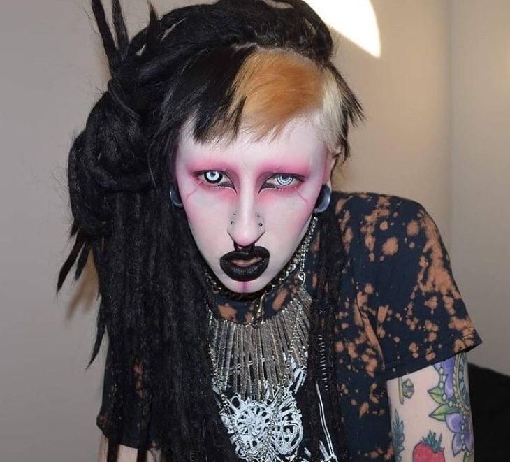 Erin a vécu et respiré l’esthétique gothique depuis son adolescence, adoptant un style si profondément ancré qu’elle ne peut plus s’imaginer autrement. Pour elle, se fondre dans la masse a toujours été impensable. S’habiller « normalement » lui paraît ennuyeux, et son apparence constitue une part essentielle de son identité. Chaque jour, elle consacre environ deux heures et demie à parfaire sa coiffure et son maquillage dramatiques, un rituel qu’elle ne saute jamais — pas même pour les fêtes en famille. Si son style audacieux déstabilise parfois sa mère, Erin est toujours restée fidèlement et sans excuses attachée au look qui la fait se sentir pleinement elle-même.