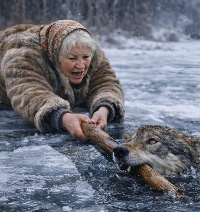 C’était une journée d’hiver glacial, et la surface du lac de montagne était recouverte d’une fine pellicule de glace. Alors qu’une vieille femme ramassait du bois, elle aperçut un immense loup qui se débattait désespérément à l’endroit où la glace avait cédé. Ses pattes glissaient, et à chaque mouvement il s’enfonçait un peu plus dans l’eau glacée. Sans se soucier du fait qu’il s’agissait d’un animal sauvage, la femme s’allongea sur la neige et tendit vers lui la longue branche qu’elle tenait. Malgré les craquements menaçants de la glace, elle ne renonça pas et, rassemblant toutes ses forces, réussit à hisser l’animal épuisé hors de l’eau.