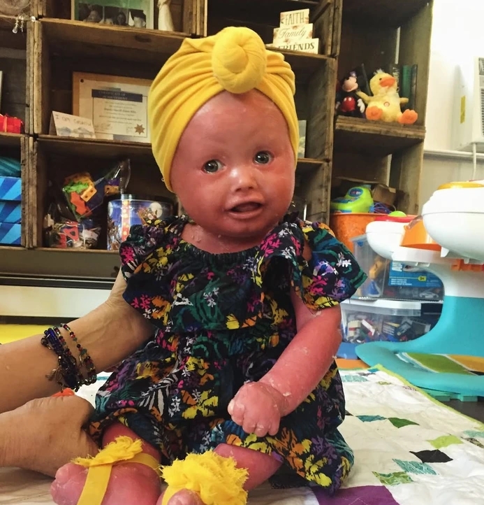 L’ichtyose arlequin est causée par une mutation génétique qui empêche la peau de former une barrière protectrice normale. Au lieu de cela, l’organisme produit un excès de kératine, créant une enveloppe rigide qui peut entraver la respiration, la régulation de la température corporelle et la lutte contre les infections. Autrefois considérée comme presque toujours mortelle, la maladie laisse aujourd’hui une chance de survie grâce aux progrès des soins néonatals. Mais survivre implique des exigences quotidiennes implacables. Dès les premiers instants, les soins ne furent ni occasionnels ni facultatifs : ils étaient constants, précis et vitaux.
