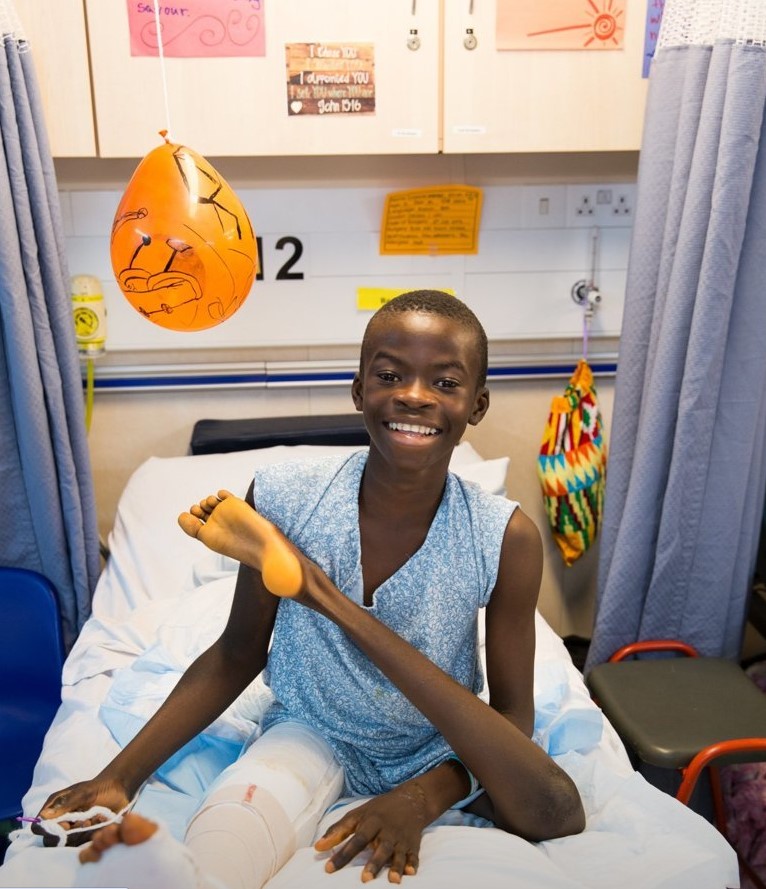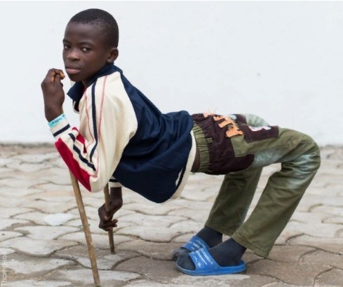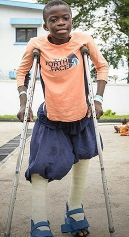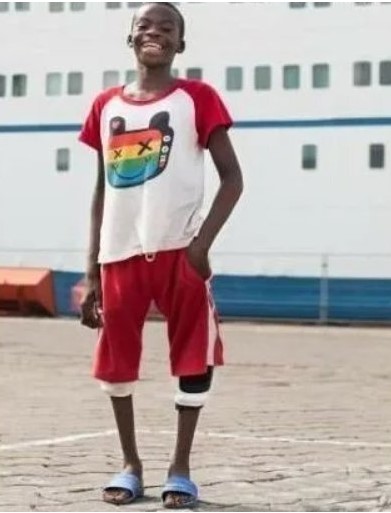 Ulrich, un garçon connu pour son sourire contagieux, est né en Afrique avec une affection rare qui faisait plier ses genoux vers l’arrière. Cette condition, appelée contracture des quadriceps, limitait sévèrement sa mobilité.