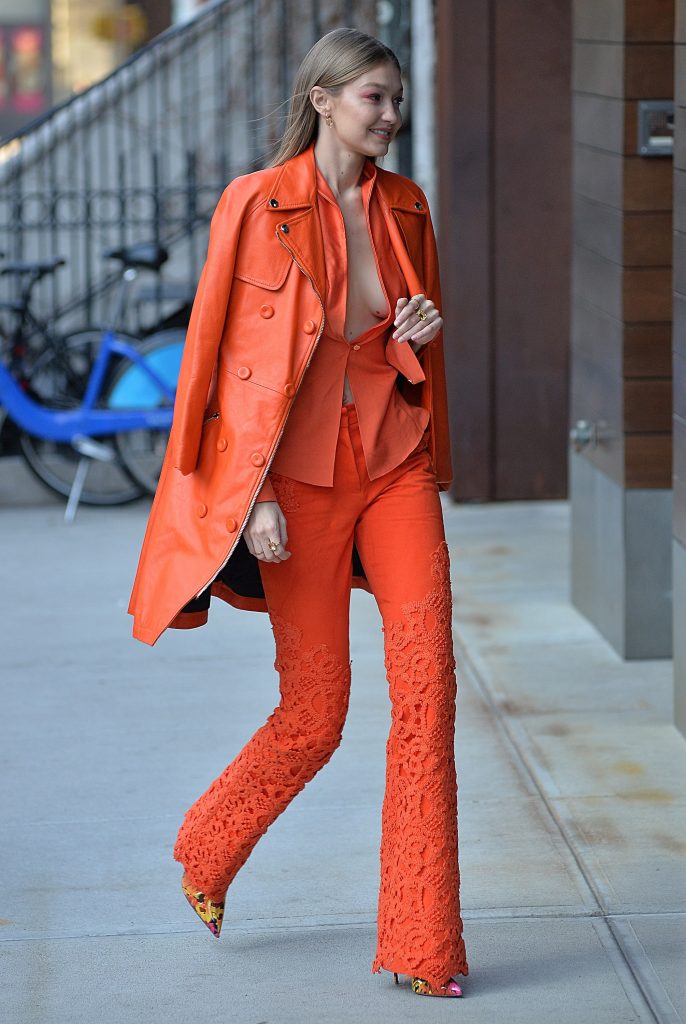 Le top model a donné l’impression que les hommes faisaient le tour du cou en passant devant elle. Et les photos des paparazzi le prouvent sans mots. Rien d’étonnant à cela : dans cette tenue, n’importe quelle fille attirerait l’attention sur elle.La jupe a attiré l’attention de tous. D’un côté, elle était attachée avec des nœuds de drague, exposant la cuisse de Gigi et une “culotte” en résille sur un collant.
