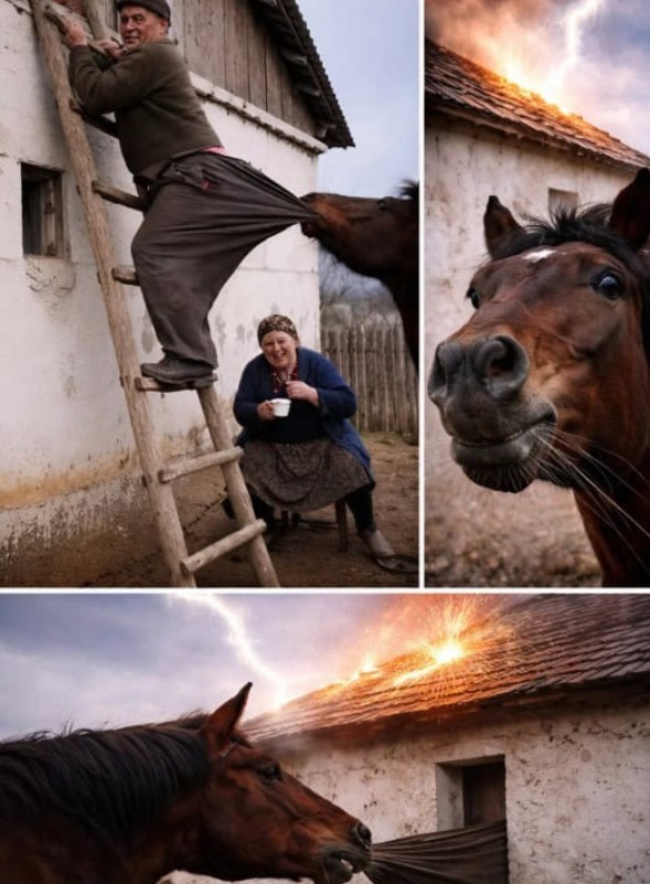 Fedor, terrifié, regarda le toit partiellement détruit, puis son cheval qui continuait de respirer calmement. Buyan, comme s’il avait pressenti le danger dès le début, fixait intensément les yeux de son maître. Ce soir-là, Fedor déchira l’ancienne échelle et la mit de côté. Il avait appris, d’une manière dramatique mais inoubliable, que parfois, l’instinct d’un animal peut sauver bien plus efficacement la vie que l’entêtement humain.