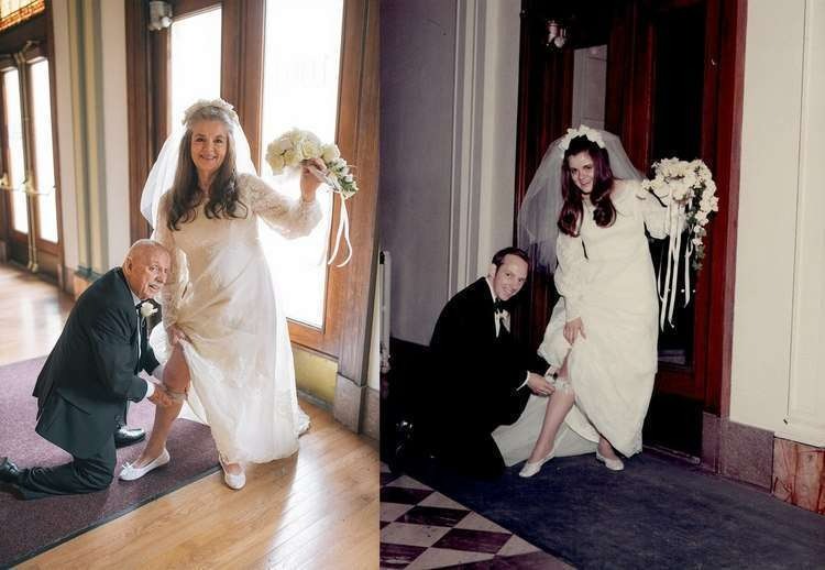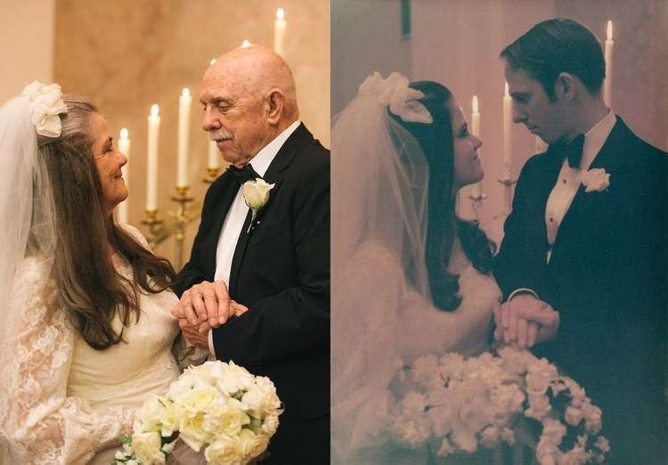 Le couple originaire de l’Iowa (États-Unis) est marié depuis plus d’un demi-siècle. À la mi-mars, ils ont célébré leurs noces d’or.Le couple cherchait un moyen de célébrer le grand jour d’une manière spéciale, l’idée de recréer l’atmosphère de leur mariage revenait à Caroline. À la surprise de la femme, son mari Kelly a également exprimé son intérêt pour le tournage.