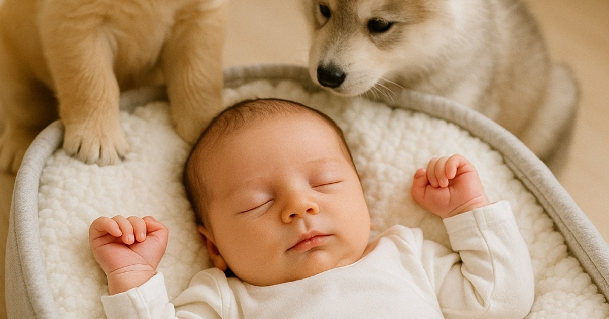 Une semaine plus tard, la maison fut à nouveau remplie de cris. Mais cette fois, d’autres cris. Leur fils était né — minuscule, comme sculpté dans la lumière laiteuse. Sa naissance coïncidait avec la perte, et la vie elle-même semblait se moquer cruellement. Mais lorsqu’on posa le bébé près du panier où dormaient les chiots, un miracle se produisit : ils remuèrent la queue, se mirent en mouvement et rampèrent vers lui. Ils couinèrent, frottèrent leurs museaux contre la couverture, comme pour reconnaître leur frère. Le garçon tendit la main et les toucha. À cet instant, ils devinrent inséparables.