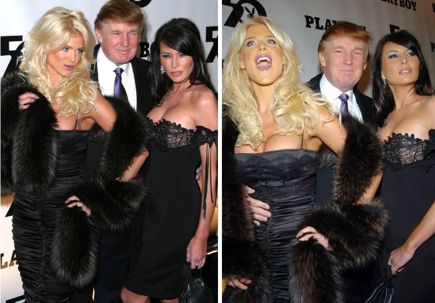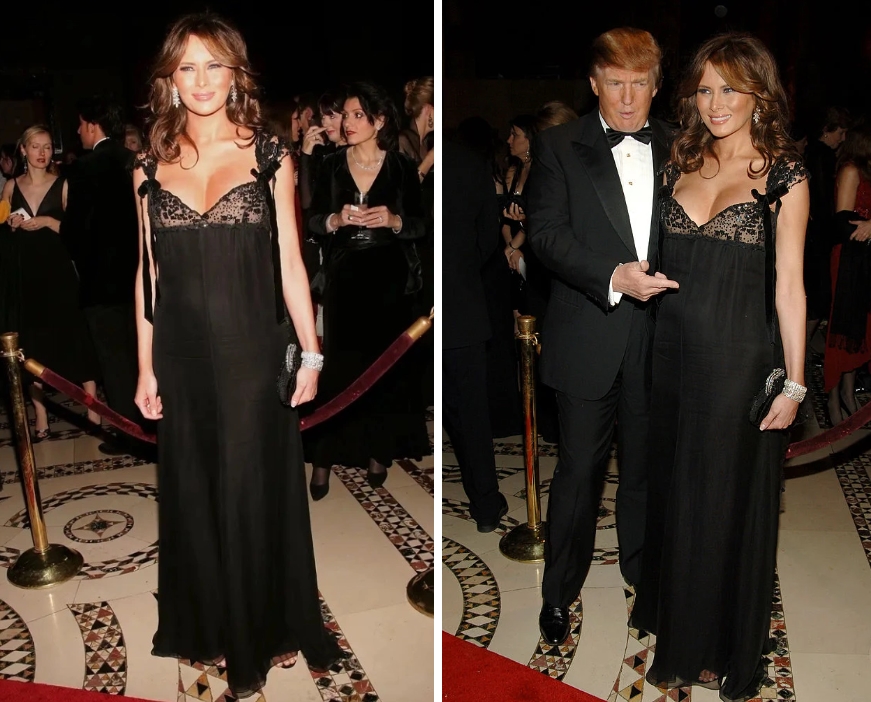 Melania’s fashion instincts were just as sharp during the height of Y2K trends. At the 2004 Marc Jacobs show during New York Fashion Week, she embraced the era’s pink obsession with a sheer baby-doll top paired with Levi’s jeans — a playful combination that highlighted her sculpted figure and effortless cool. And in 2003, at the Playboy 50th Anniversary celebration, she stepped out in a perfectly tailored little black dress, accessorized simply with diamond earrings and a ring, yet still managing to outshine the other models.