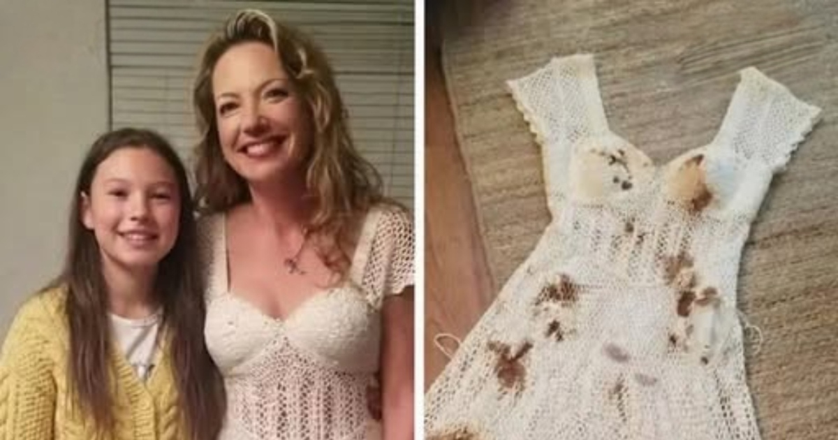 Le matin de mon mariage a été brutalement bouleversé lorsque j’ai trouvé ma fille Lily en larmes dans la buanderie. Pendant des mois, elle avait tricoté ma robe de mariée de ses propres mains — un véritable acte d’amour — en utilisant des aiguilles en bois de bouleau que son père, aujourd’hui disparu, lui avait laissées. Cette robe était bien plus qu’un simple vêtement : elle incarnait sa résilience et l’histoire de notre famille. Pourtant, j’ai découvert que le corsage avait été déchiré et que la jupe était imbibée de vin rouge. Ce n’était pas un accident maladroit, mais un acte délibéré de sabotage destiné à détruire l’élément le plus chargé d’émotion de cette journée.