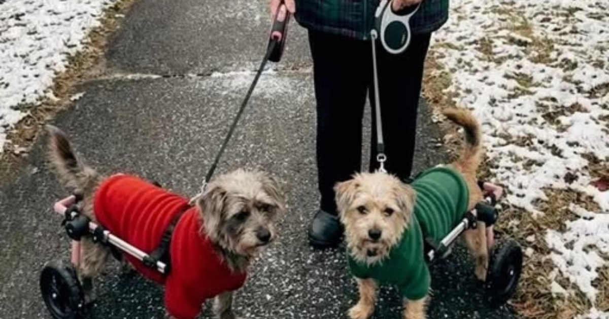 À soixante-quinze ans, je n’aurais jamais imaginé que mes promenades quotidiennes avec mes chiens rescapés deviendraient une véritable leçon de courage et de fidélité à ce qui compte vraiment. Née et élevée dans le Tennessee, j’ai passé la majeure partie de ma vie à recueillir des animaux dont personne ne voulait — des oiseaux blessés quand j’étais enfant, des chats errants une fois installée dans ma maison, puis, après la mort de mon mari, des chiens. Pearl et Buddy n’étaient pas ces animaux adorables et recherchés pour lesquels on fait la queue ; ils étaient petits, handicapés et connaissaient déjà la douleur de l’abandon. Pearl avait été renversée par une voiture, et Buddy était né sans pouvoir se servir de ses pattes arrière. Grâce à de minuscules chariots, ils ne marchaient pas : ils roulaient, avançant avec une joie et une curiosité capables d’illuminer le visage de quiconque les croisait.