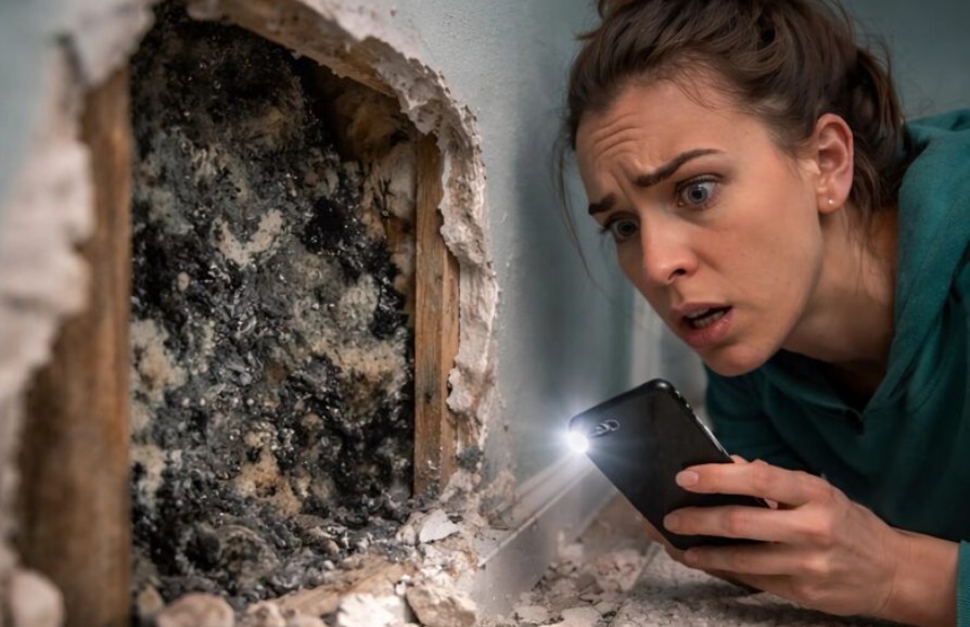 Exaspérée, j’ai saisi Daisy par le collier pour l’écarter, et c’est à cet instant précis qu’une odeur lourde et méphitique s’est échappée du mur. En éclairant avec mon téléphone le vide sombre qu’elle avait mis à nu, l’effroi m’a saisie. Derrière le berceau, les solives en bois et l’isolant étaient recouverts d’une couche noire, épaisse et spongieuse. Ce n’était pas une simple moisissure : c’était du stachybotrys, la redoutable moisissure noire toxique.