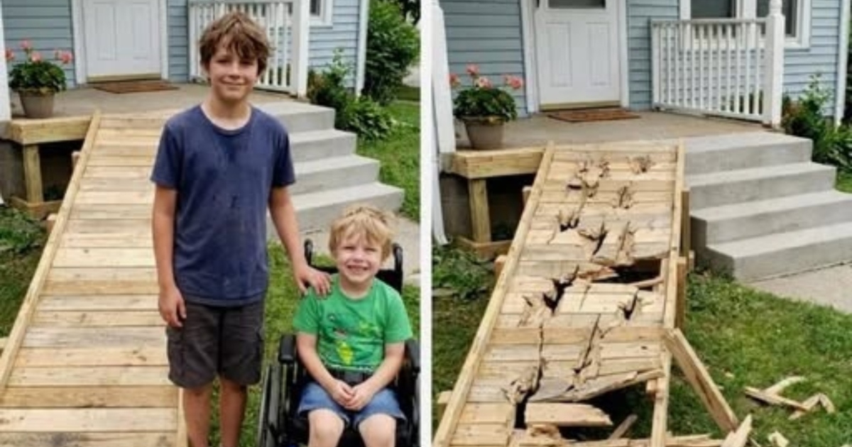 Le jeune Ethan, âgé de douze ans et doté d’un sens inné de la justice, remarqua que notre jeune voisin Caleb était prisonnier sur sa propre véranda. Caleb utilisait un fauteuil roulant, mais sa maison possédait quatre marches abruptes et aucune rampe, ce qui l’empêchait de rejoindre les enfants du quartier et le confinait à les observer de loin. Lorsqu’Ethan apprit que l’assurance ne couvrirait pas les frais d’une rampe, il décida d’honorer la mémoire de son père décédé – un pompier qui lui avait appris le bricolage – en sacrifiant ses économies pour en construire une lui-même. Après des jours de mesures, de découpe et de ponçage, Ethan installa une rampe en bois qui permit enfin à Caleb de descendre jusqu’au trottoir et de se joindre à une course avec les enfants du quartier.
