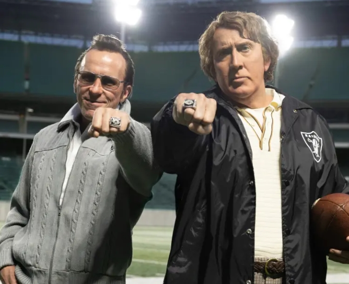 De nouvelles photos de Bale sur le plateau ont été publiées peu après que le studio ait diffusé une première image de lui et de Cage en personnage. Le cliché montre les deux lauréats d’un Oscar sur un terrain de football, pointant leurs bagues de Super Bowl assorties vers la caméra. Alors que Bale incarnait parfaitement Al Davis, la transformation de Cage en John Madden, portant une combinaison pour représenter l’entraîneur devenu commentateur NFL, a également impressionné et surpris les fans.