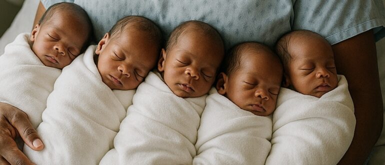 Gleich nach der Geburt der Fünflinge flüsterte der Vater: „Das sind nicht meine Kinder“, und verließ die Entbindungsstation. Die Mutter blieb ruhig und schwor sich, die Babys allein