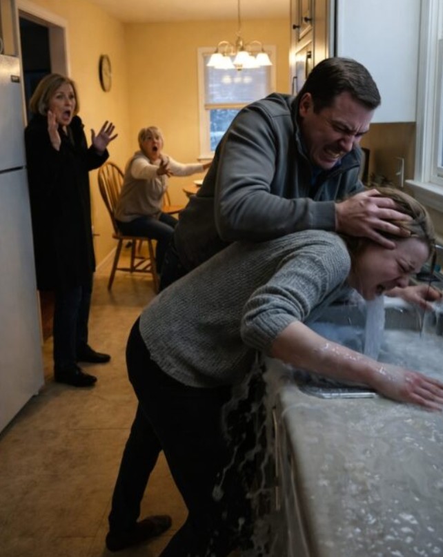 Son gendre maintenait violemment la tête de sa fille sous l’évier, laissant couler de l’eau glaciale sur son visage. La jeune femme peinait à respirer, ses mains tremblaient. Pire encore, la mère du gendre était assise à table, regardant la scène avec un calme glacial, comme si tout cela était normal. À cet instant, la mère comprit enfin pourquoi sa fille s’était éloignée d’elle pendant des mois et d’où venait cette profonde tristesse dans sa voix.