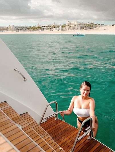 Sur d’autres photos, elle a posé avec des amis voyageant sur un yacht et a défilé avec un entourage d’amis dans des looks de plage.