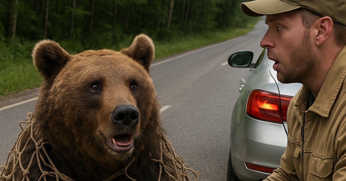 J’ai vu un ours pris au piège dans un filet au bord de la route. Je me suis arrêté pour l’aider — et ce qui s’est passé ensuite m’a laissé sans voix 😱😱