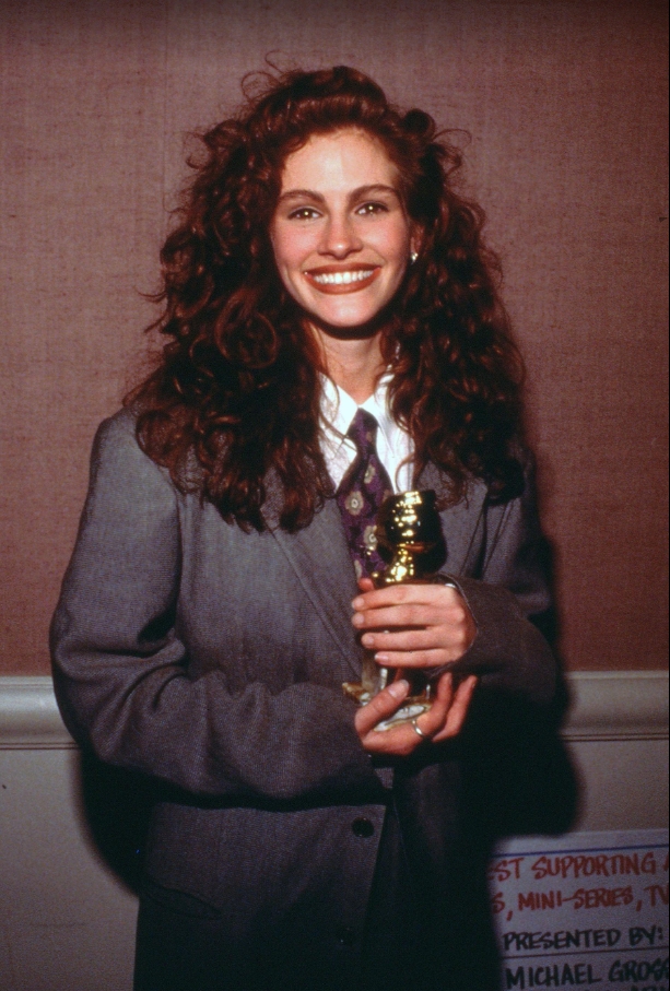 La tenue originale était signée Armani. Julia Roberts a d’ailleurs raconté qu’au début de sa carrière, elle ignorait que les cérémonies de remise de prix imposaient traditionnellement le port de robes de soirée. Elle est donc entrée dans une boutique et a choisi ce costume « directement sur le portant », juste avant l’événement. Un choix spontané qui a fini par bouleverser les codes du tapis rouge et imposer le costume comme une option élégante et audacieuse lors des grandes cérémonies.