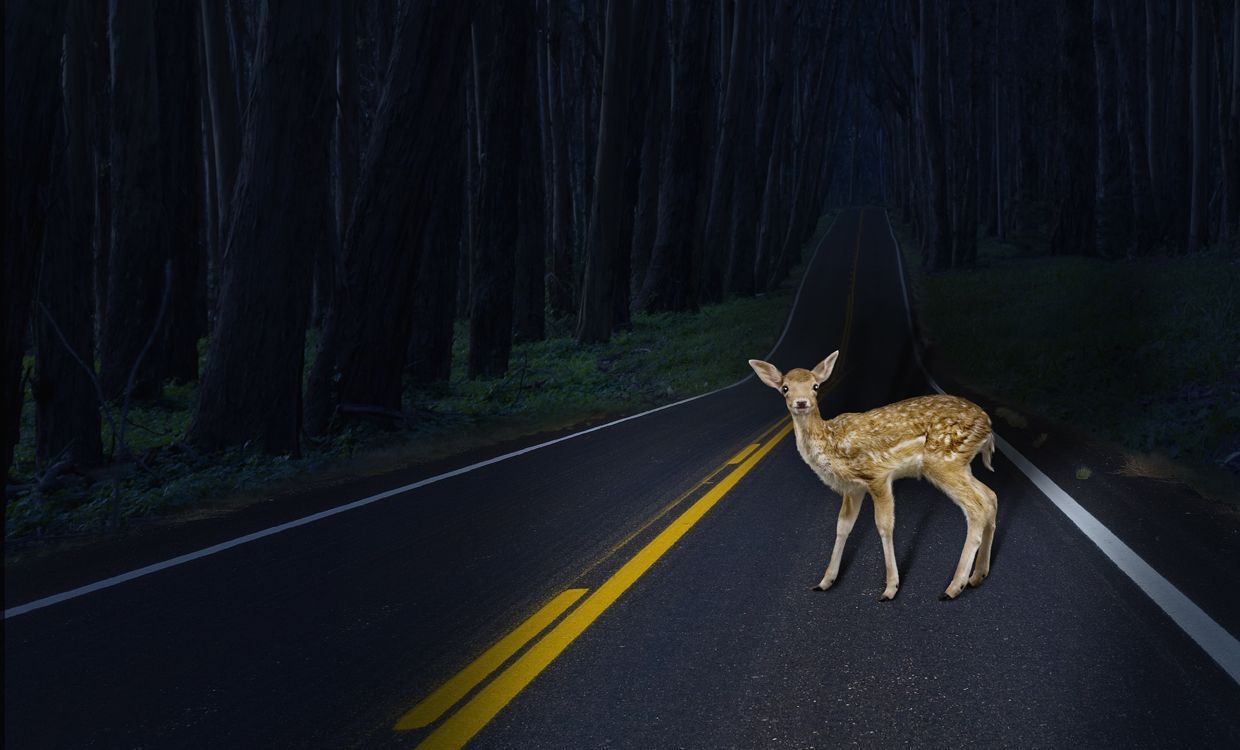Jeune, couleur brun clair, avec des yeux reflétant le ciel. Il avançait lentement, sachant exactement où il allait. Il s’arrêta au milieu de la route, juste devant la voiture.