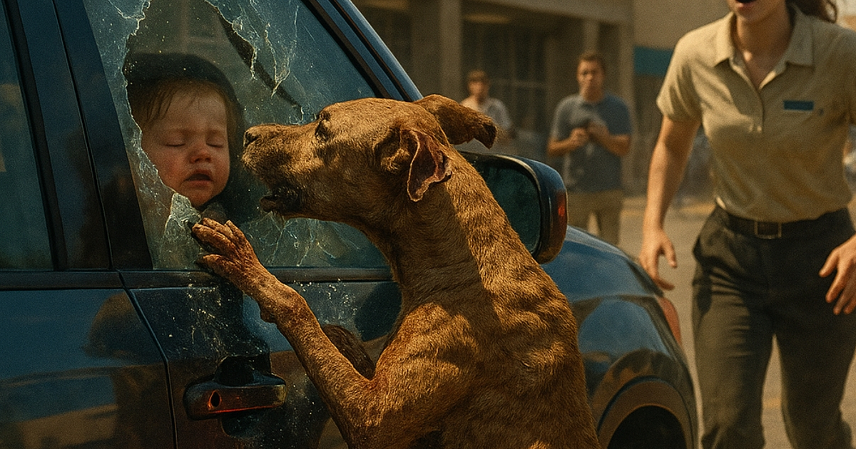 D’abord, la chienne grogna, puis sauta contre la vitre. Encore et encore. Ses pattes laissaient des traces sanglantes, ses crocs glissaient sur le verre chauffé par le soleil. Au troisième coup, la vitre se fissura. Un fracas — puis un silence. L’alarme de la voiture retentit.