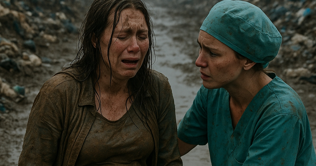 Sous un tas de déchets gisait une femme — jeune, dans un manteau déchiré, trempée jusqu’aux os. Le visage livide, les lèvres bleues.