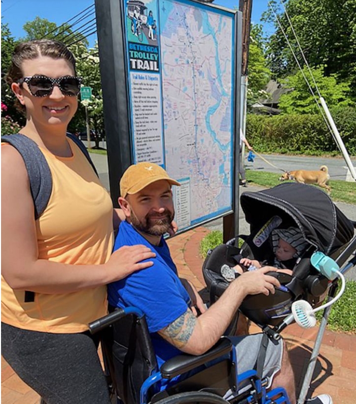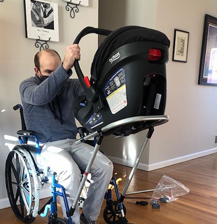 Il y a trois ans, Jeremy King, 37 ans, originaire de Germantown, dans le Maryland, a dû relever un nouveau défi en se préparant à devenir père. Après une opération pour une tumeur au cerveau, il présentait des limitations physiques affectant son équilibre, rendant dangereux le port d’un enfant. Lorsque lui et sa femme Chelsie, 32 ans, ont découvert qu’ils attendaient leur premier bébé en juin 2020, ils se sont rendu compte que les ressources pour les parents en situation de handicap étaient rares. Cherchant une solution, Chelsie, professeure de théâtre à la Bullis School, a contacté son collègue Matt Zigler, qui enseigne un cours appelé Making for Social Good.
