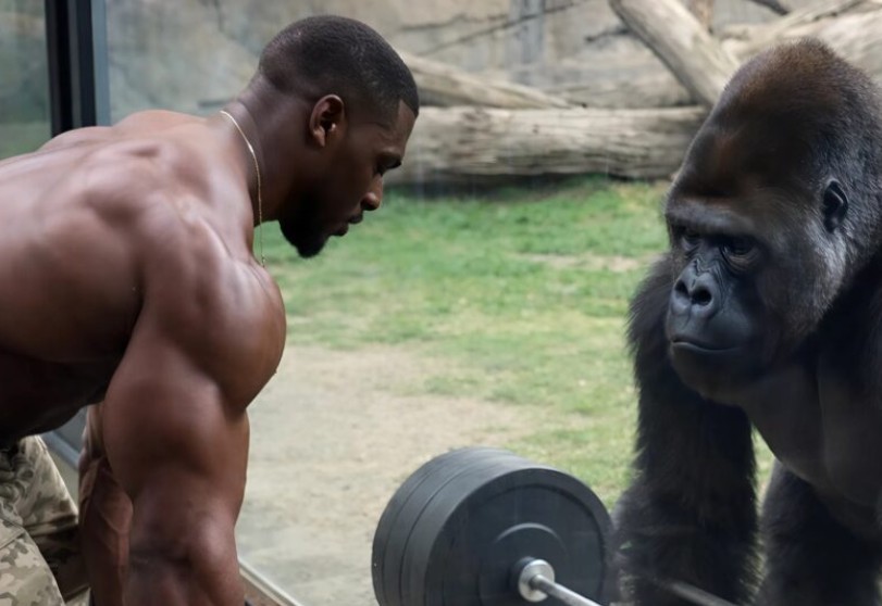 Un athlète réputé pour sa force décida, dans l’unique but de faire le buzz, de « défier » un gorille. Il voulut impressionner l’animal en soulevant une lourde barre d’haltérophilie, persuadé que le gorille tenterait aussitôt de reproduire le geste. Mais lorsque le tournage commença et que l’animal s’approcha de la barre, un événement totalement inattendu se produisit, laissant le public comme l’athlète eux-mêmes complètement stupéfaits.
