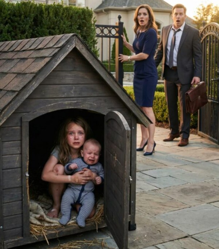 Lorsqu’elle les conduisit vers la niche du chien, la petite fille fut envahie par la peur. « S’il vous plaît, nous n’avons rien fait de mal », murmura-t-elle. Mais la femme, froide et impassible, les poussa dans l’abri étroit et sombre, puis verrouilla la porte derrière eux. Dans l’obscurité totale, les sanglots éclatèrent. La fillette serra contre elle son petit frère de dix mois et tenta de le rassurer : « Ne pleure pas… papa va rentrer bientôt. » Ils restèrent enfermés là, impuissants, pendant deux longues heures.