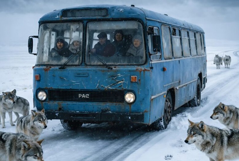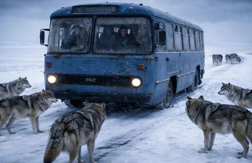 Alors que la tempête hivernale faisait rage avec toute sa violence, le bus conduit par un chauffeur expérimenté de cinquante ans avançait péniblement sur la route enneigée. Les passagers, regardant avec inquiétude l’obscurité blanche derrière les motifs de glace sur les vitres, virent soudain le véhicule ralentir. Les yeux du chauffeur plissés, les mains agrippant fermement le volant, trahissaient sa tension. À travers le rideau de neige, d’abord une, puis cinq, puis des dizaines de silhouettes grises surgirent sur la route. Ce n’étaient pas des chiens, mais une immense meute de loups. Lorsque le bus s’arrêta, un frisson glacial de peur parcourut tous les occupants ; les animaux sauvages encerclaient silencieusement le véhicule, simplement à l’affût.