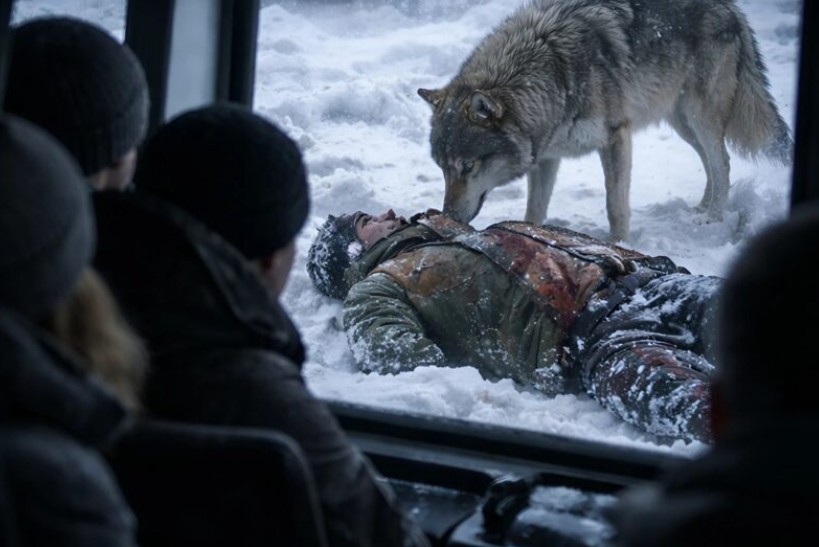 Les passagers criaient, désespérés, pour que les portes soient verrouillées, mais le comportement étrange des loups retenait leur attention. Ils ne grognaient pas, n’attaquaient pas les vitres ; ils semblaient figés, comme pour signaler quelque chose. Le chauffeur, en essuyant la buée du pare-brise, réalisa que les regards des loups n’étaient pas tournés vers le bus, mais fixaient un amas de neige sur le bord de la route. Lorsque le vent se calma un instant, la silhouette immobile d’un corps humain apparut sous la neige.